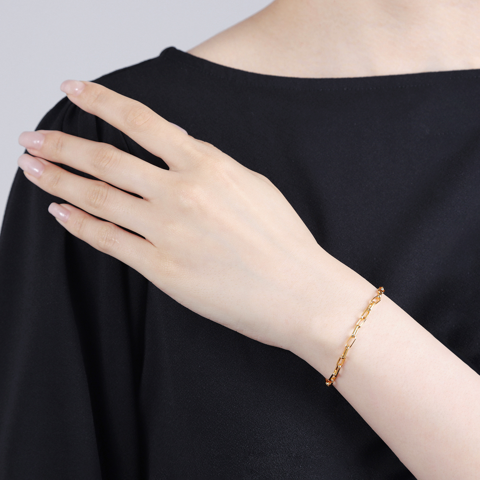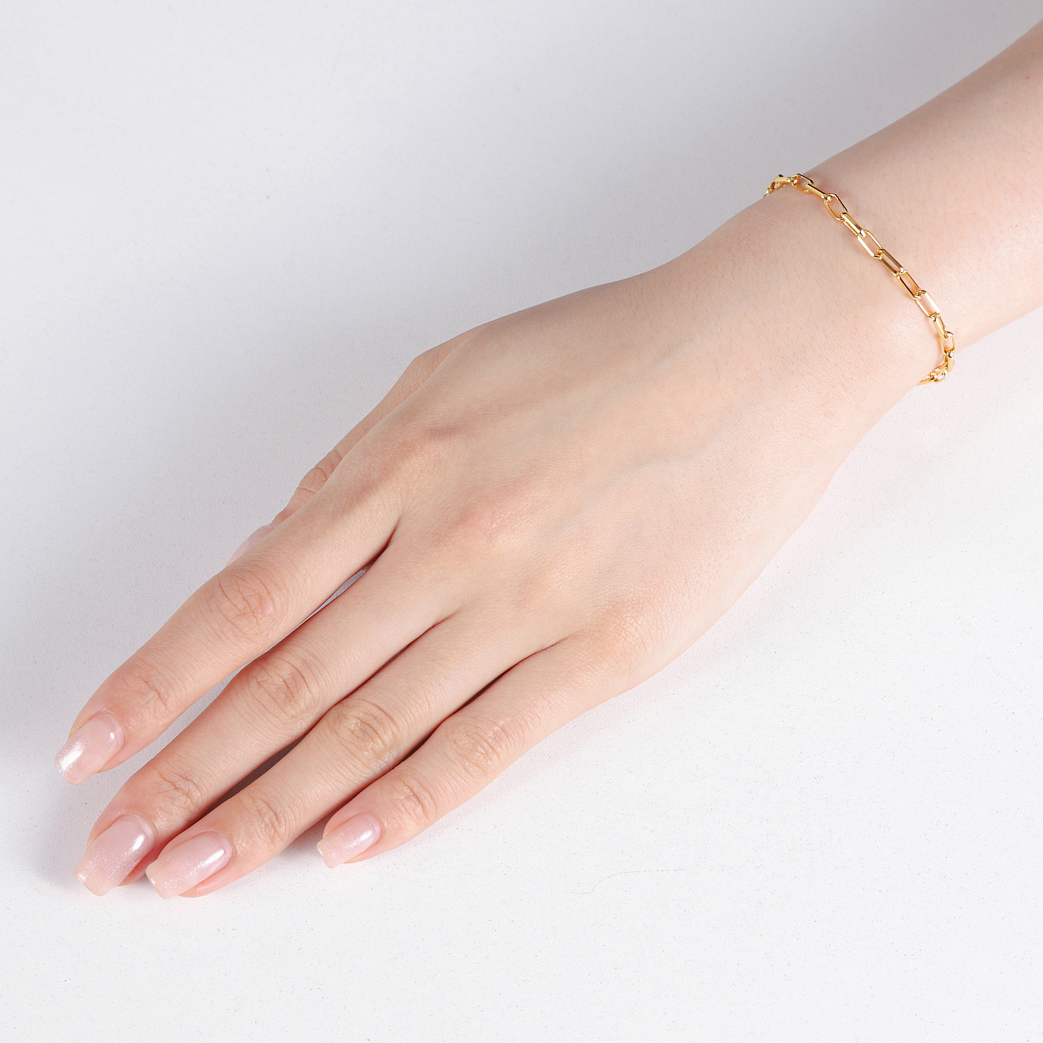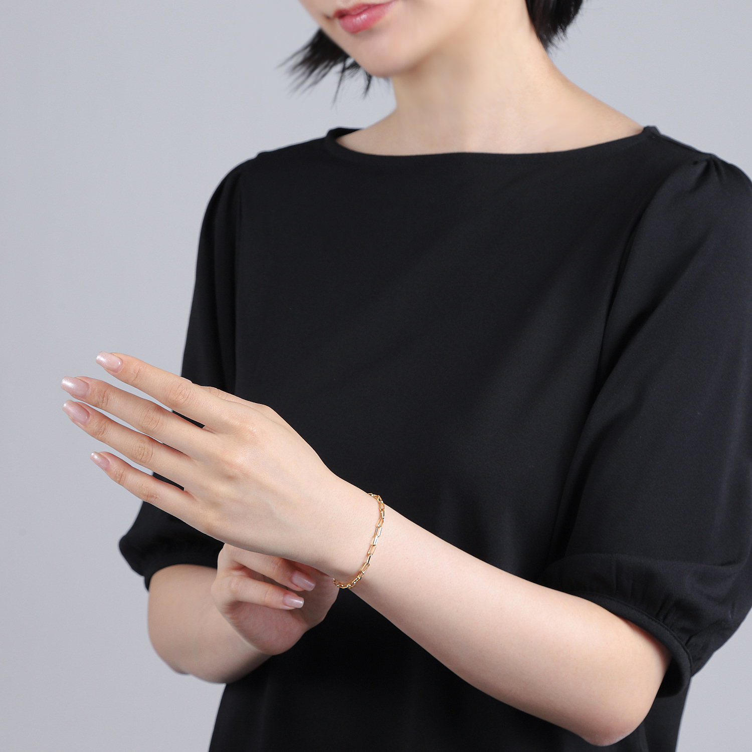 エレガントな煌きを齎すミラノリンクチェーンブレスレット。エッジの効いたカット断面からシャープな輝きを放ちます。