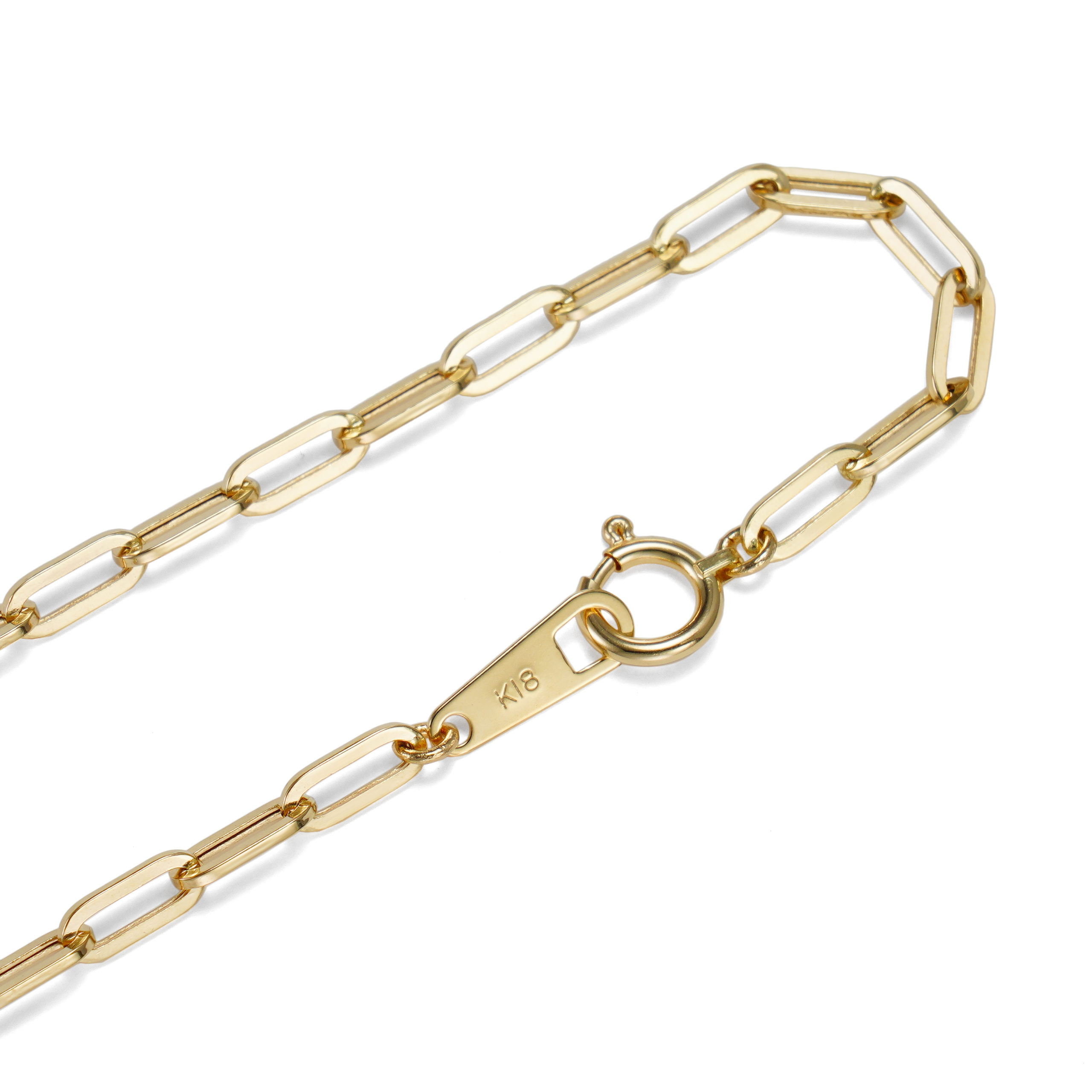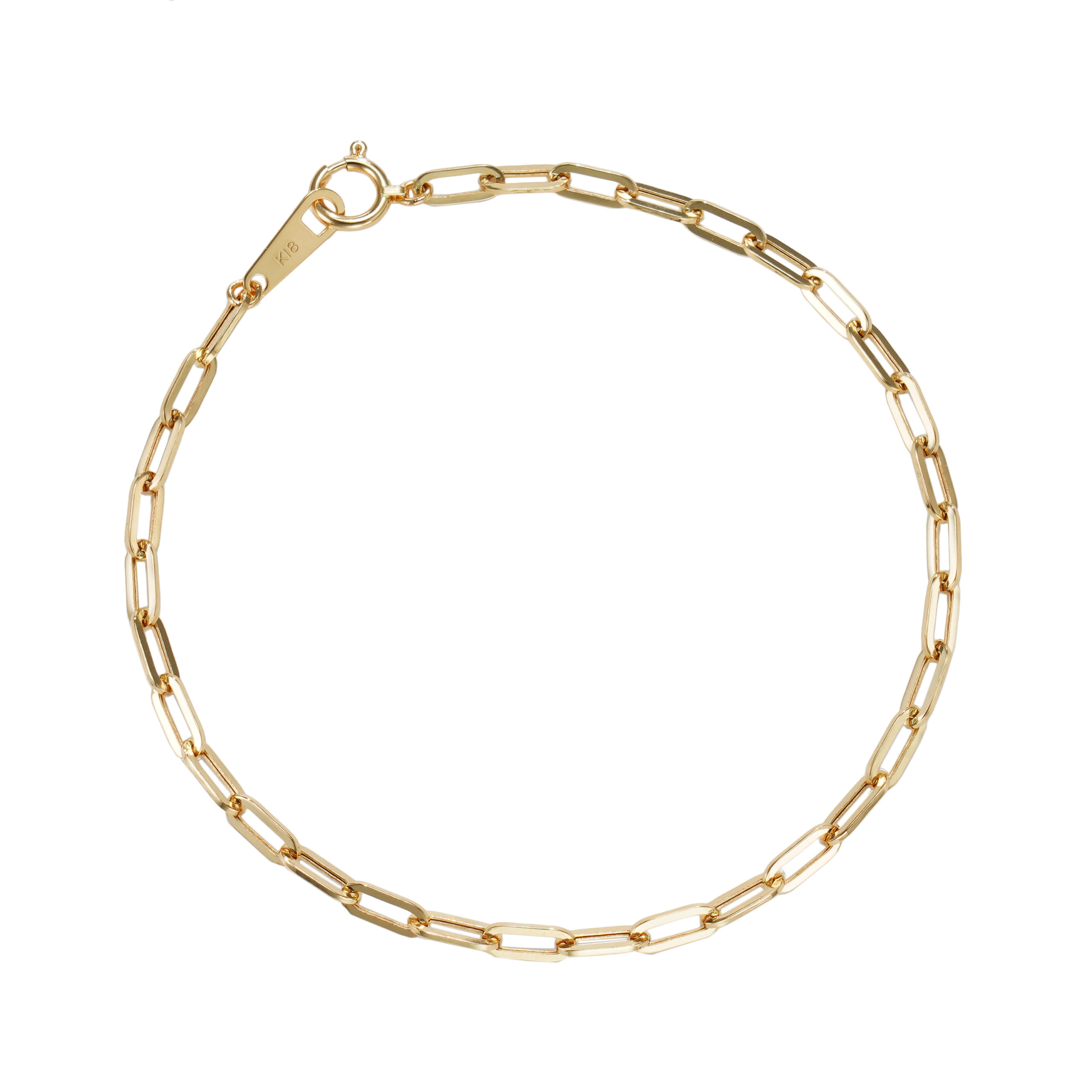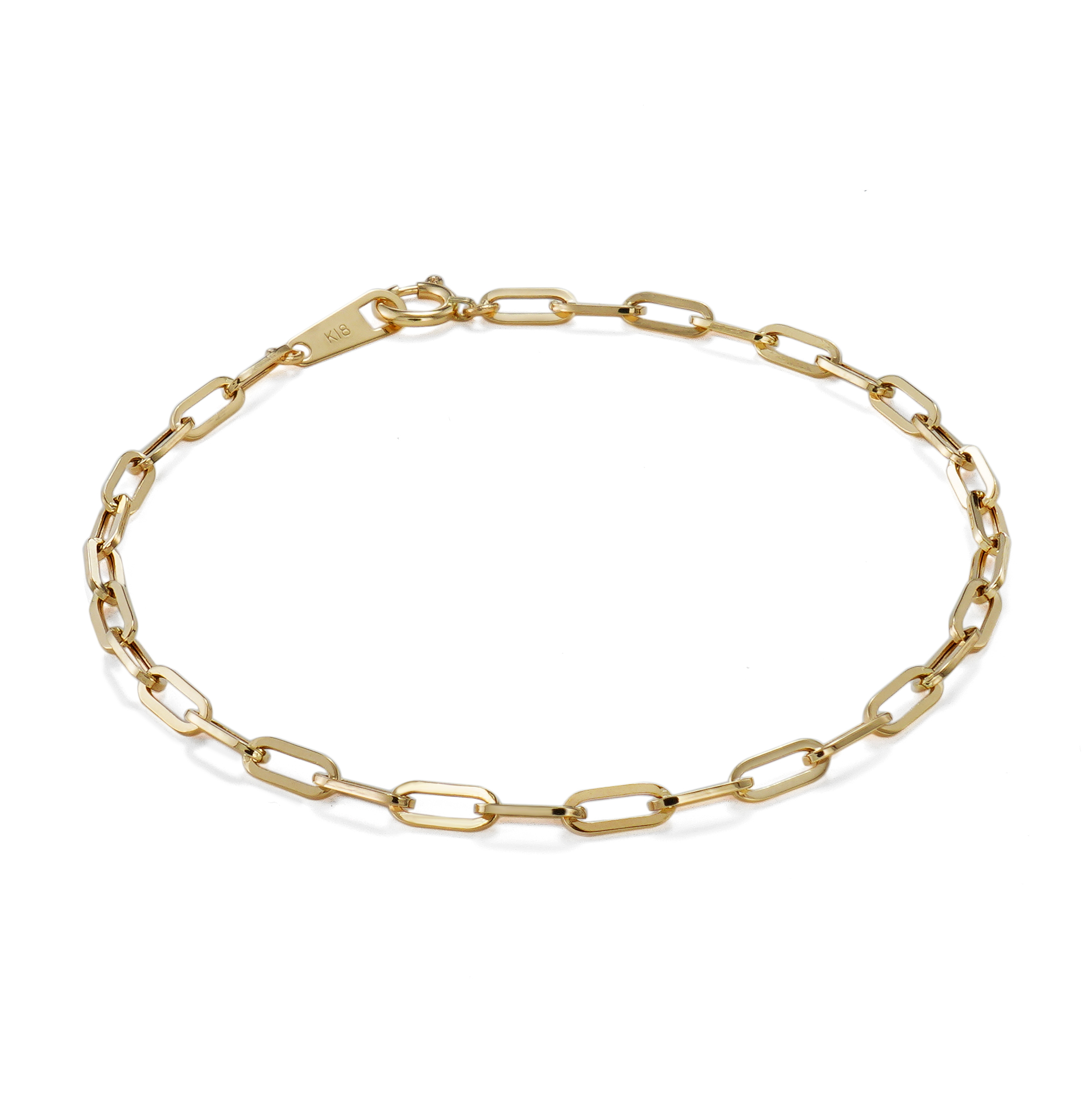 K18 18金 ペーパークリップ ブレスレット 2.7mm幅 16cm~22cm 引輪 選べるサイズ