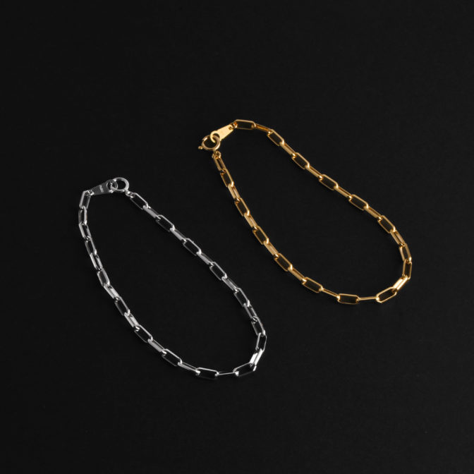 エレガントな煌きを齎すミラノリンクチェーンブレスレット。エッジの効いたカット断面からシャープな輝きを放ちます。