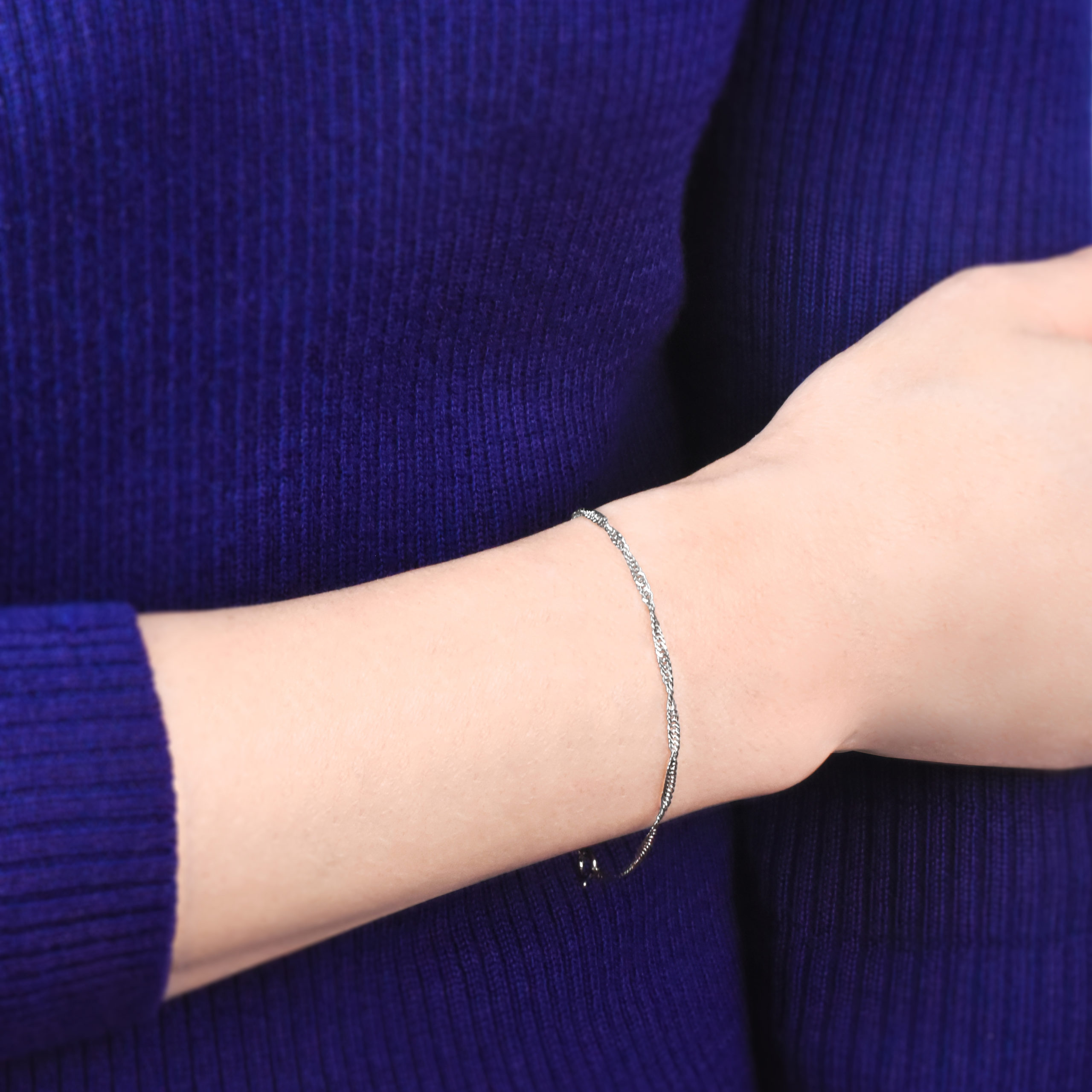 捻じれ具合で表情を変えシンプルながらも何処か拘りを持たせてくれる上品で綺麗なブレスレットです。
