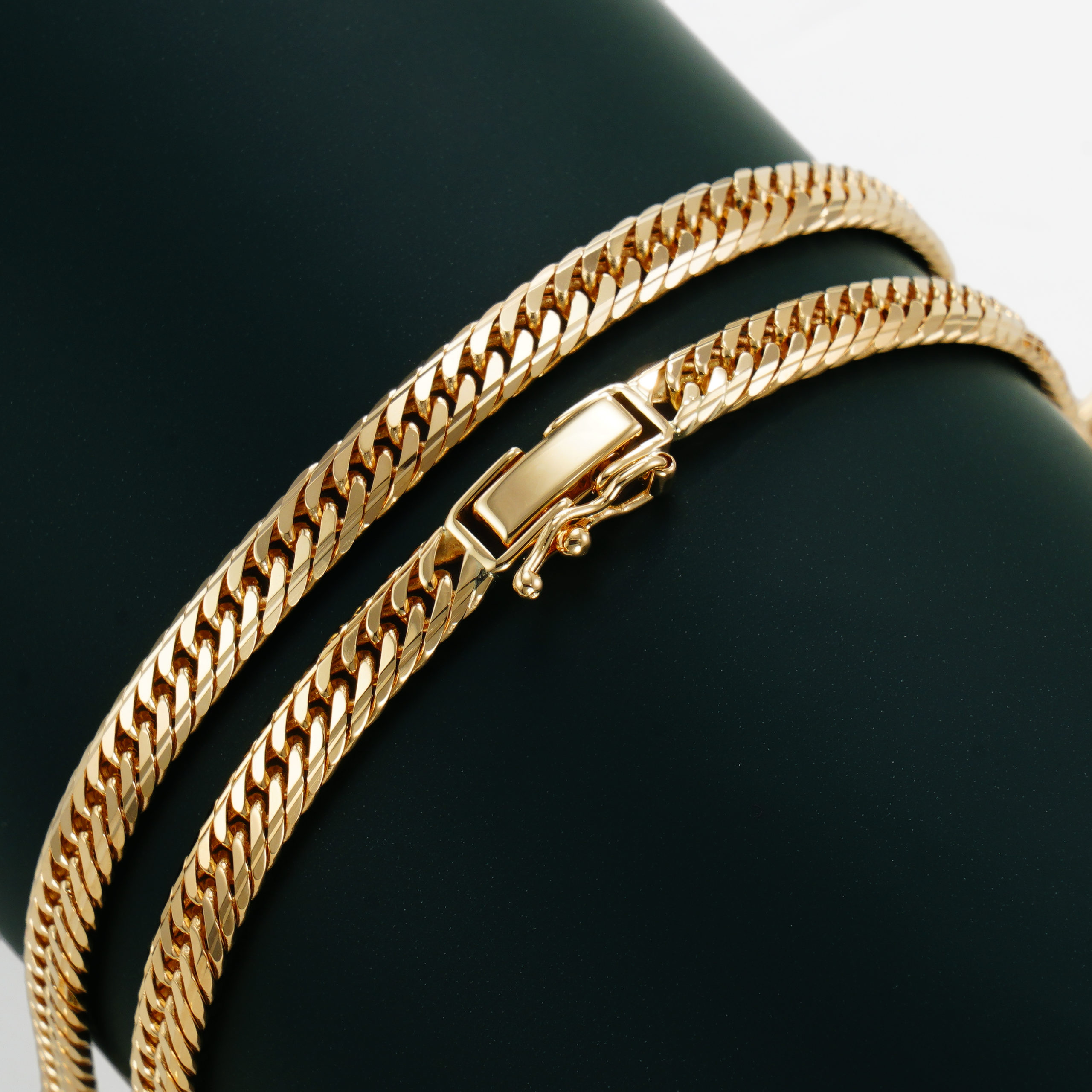 ダブル編みよりもさらに密になったタイプの喜平チェーンとなります。