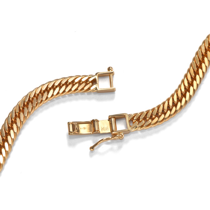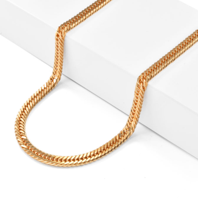最もベーシックなタイプの2面喜平を3重編みにする事で、より素材の良さが引き立つソリッドな重厚感と