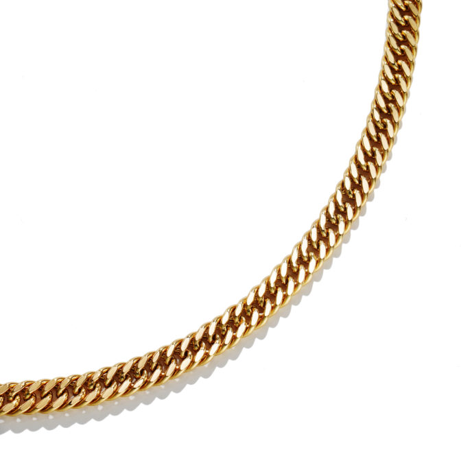 ソリッドでベーシックな輝きが魅力の2面カット喜平チェーンを