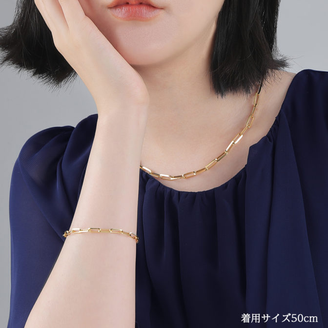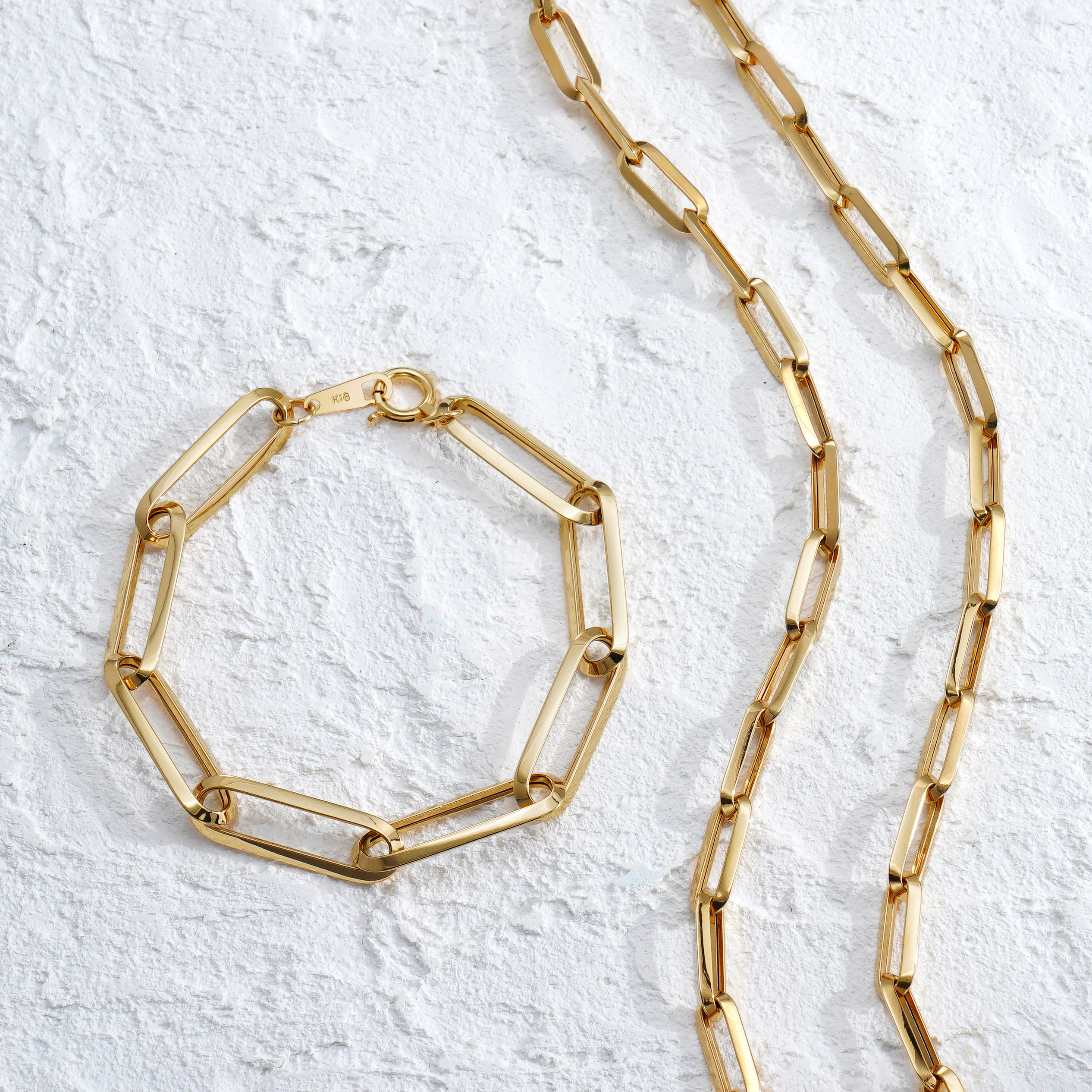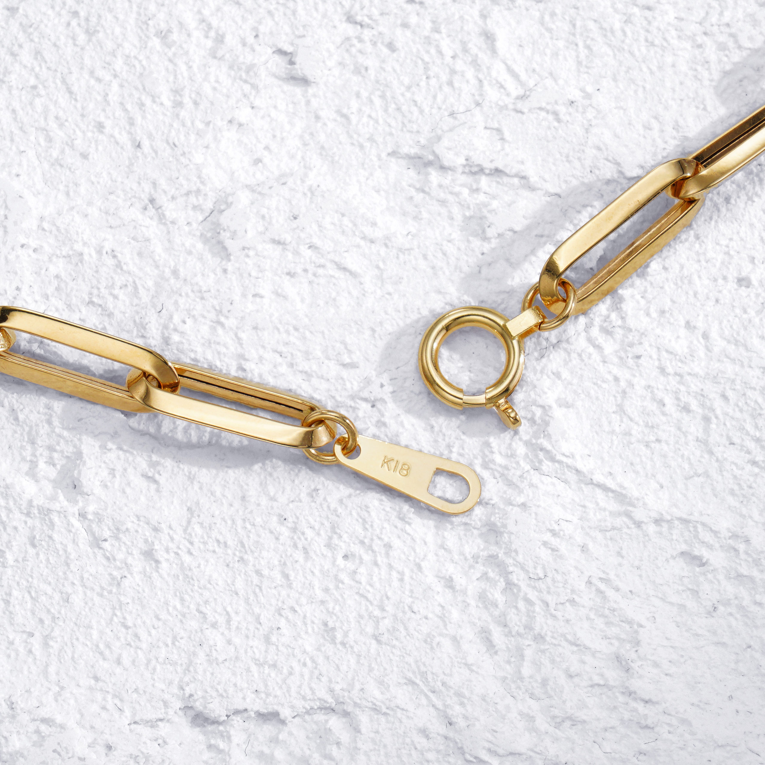 大胆なロングリンクが胸元に存在感を与える、18金ゴールドネックレス。