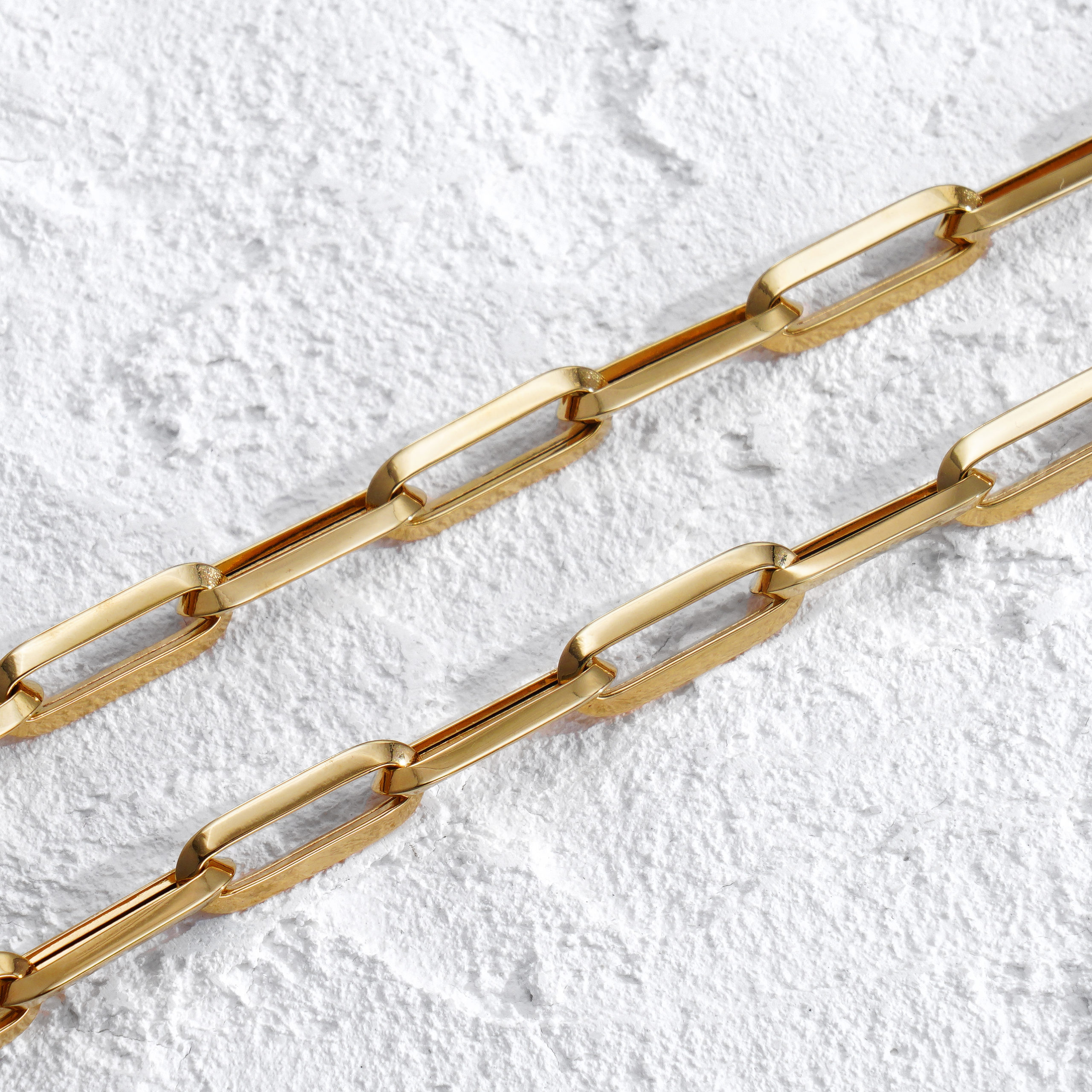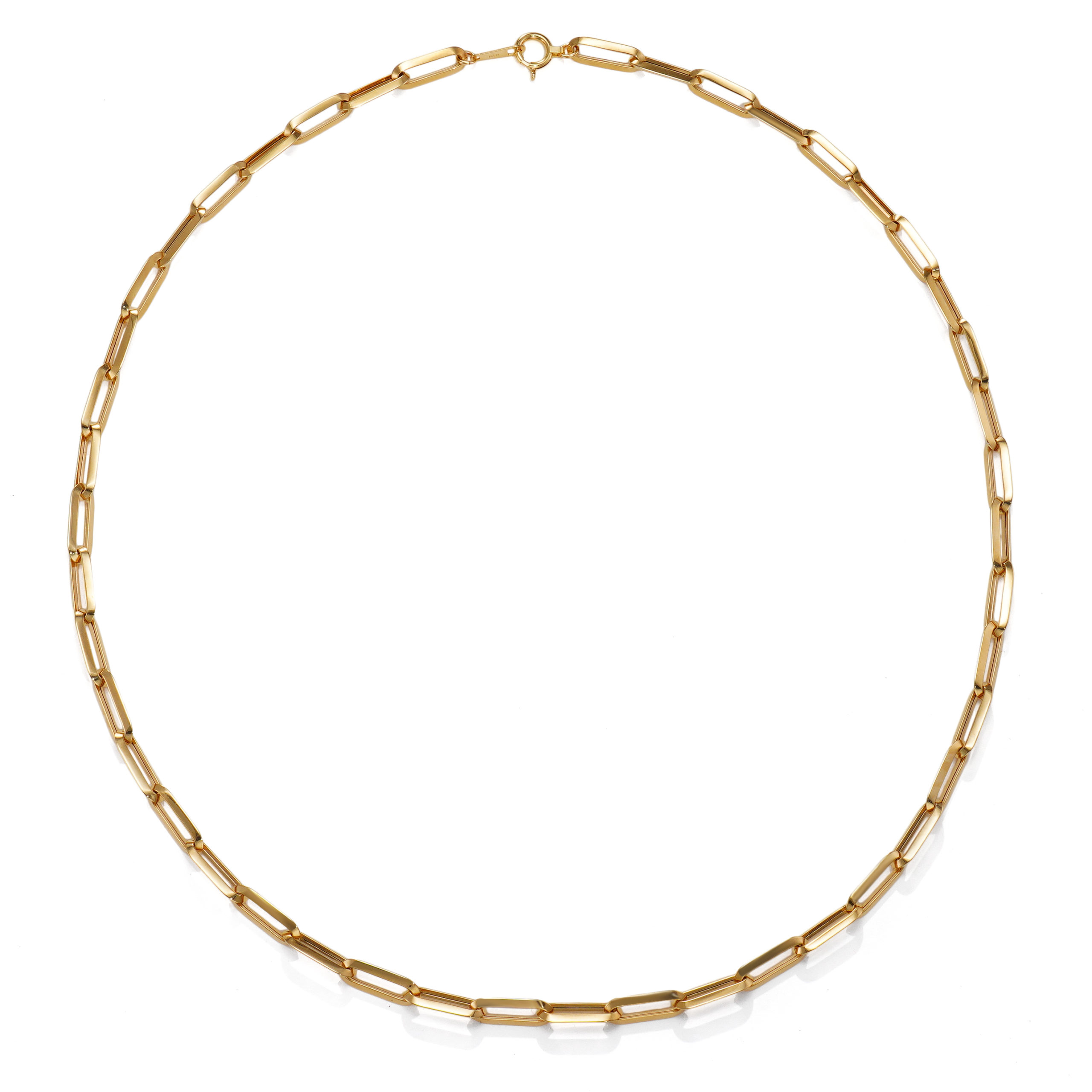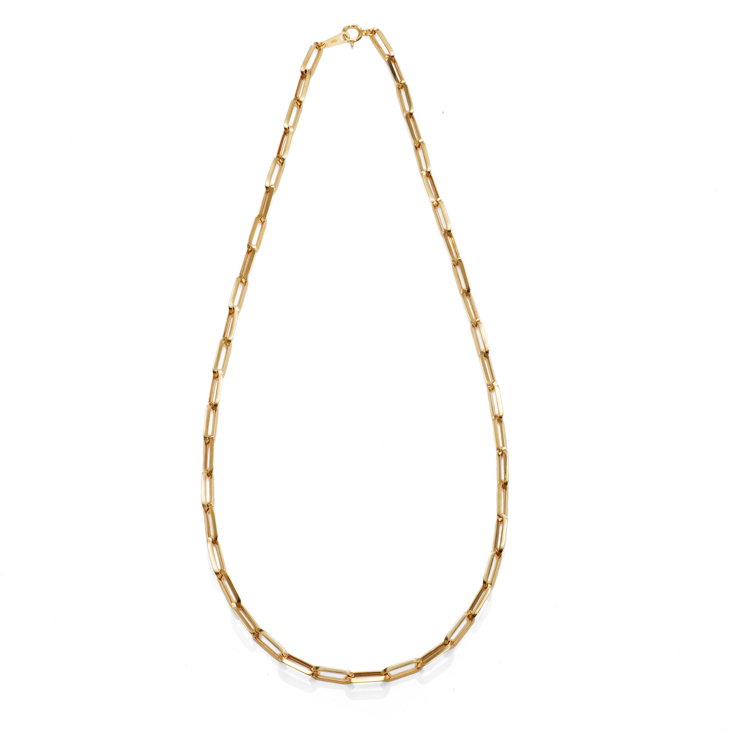 大胆なロングリンクが胸元に存在感を与える、18金ゴールドネックレス。