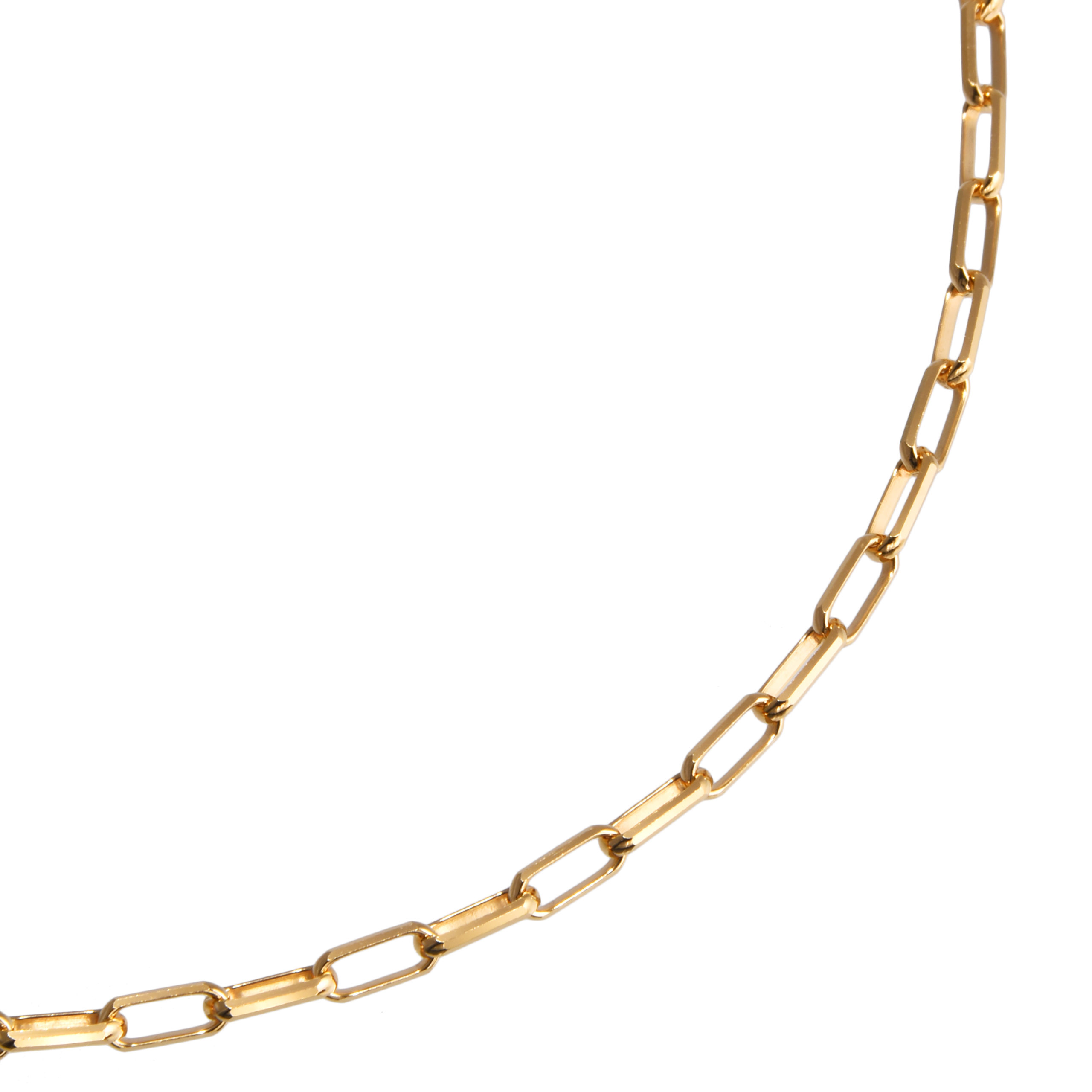 エレガントな煌きを齎すミラノリンクチェーンネックレス。エッジの効いたカット断面からシャープな輝きを放ちます。