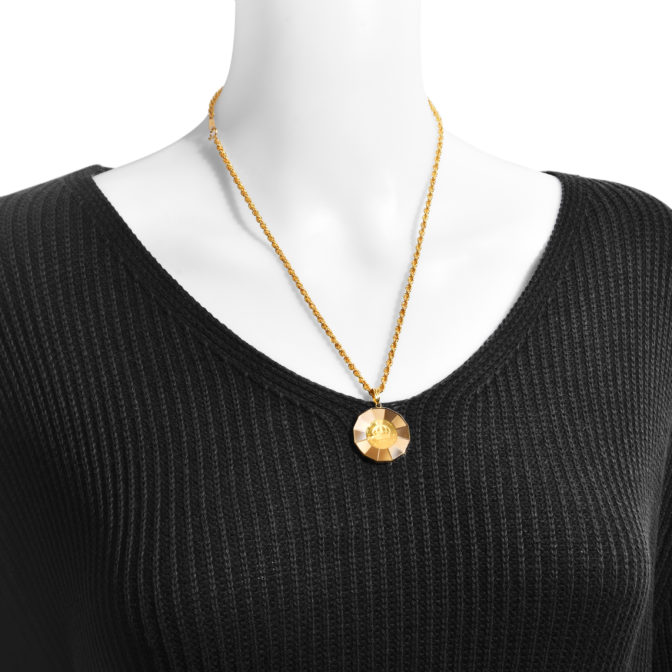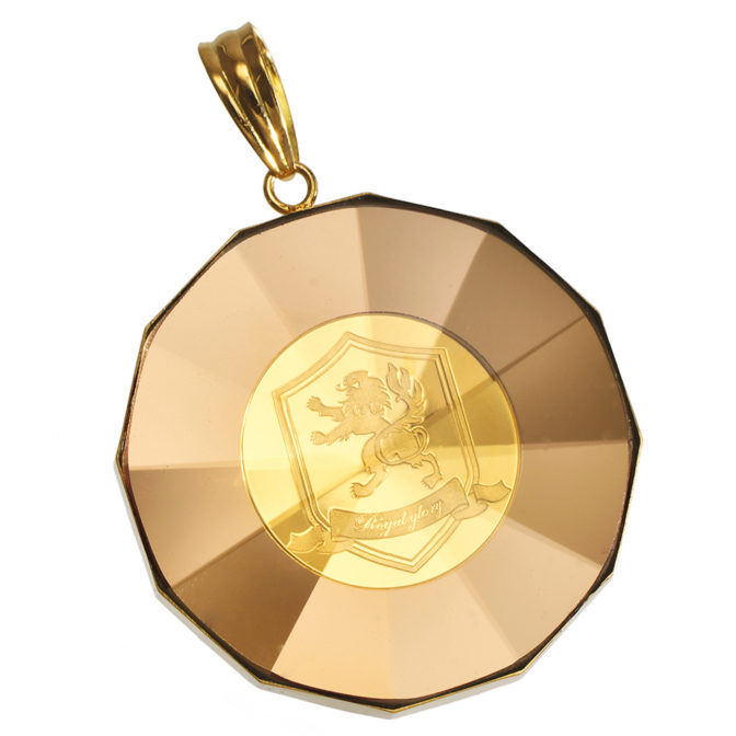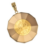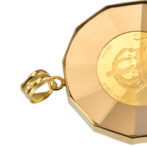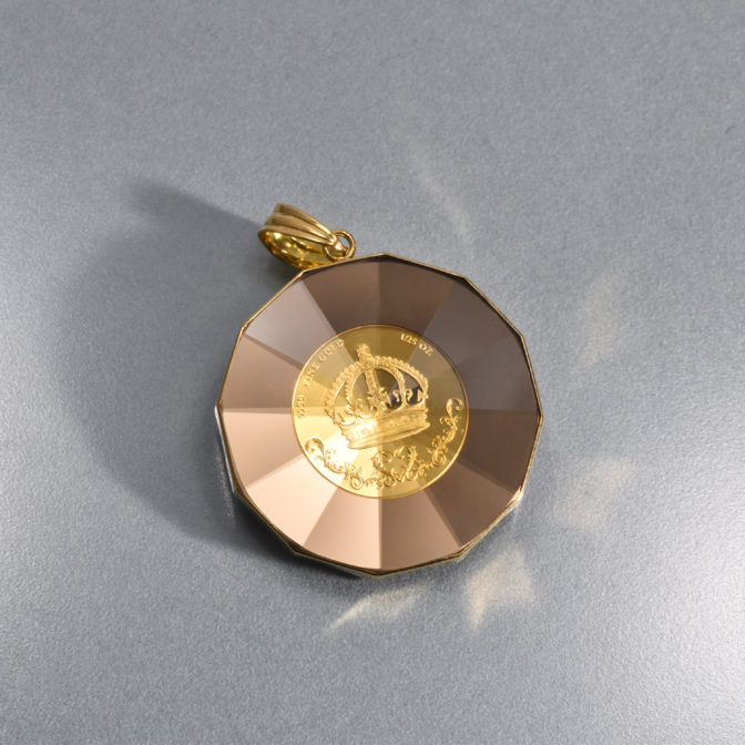 K24 純金 コイン ペンダント クラウン & 獅子 1/25oz 放射カットガラス ゴールド