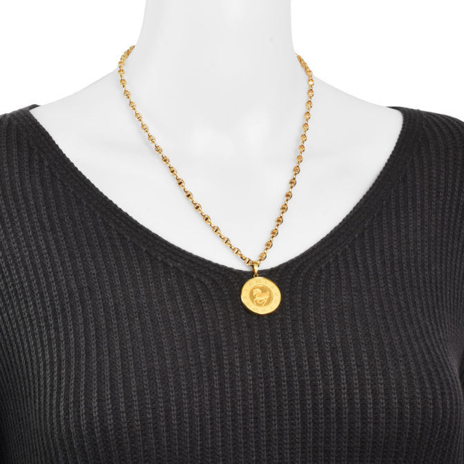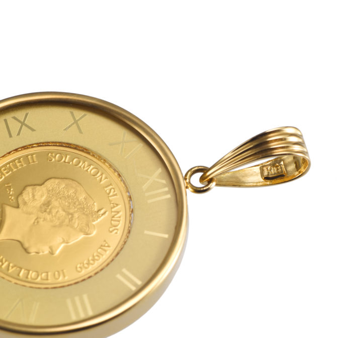 K24 純金 コイン ペンダント ソロモン ホース & エリザベス 1/25oz ラウンド ガラス時計 マットゴールド