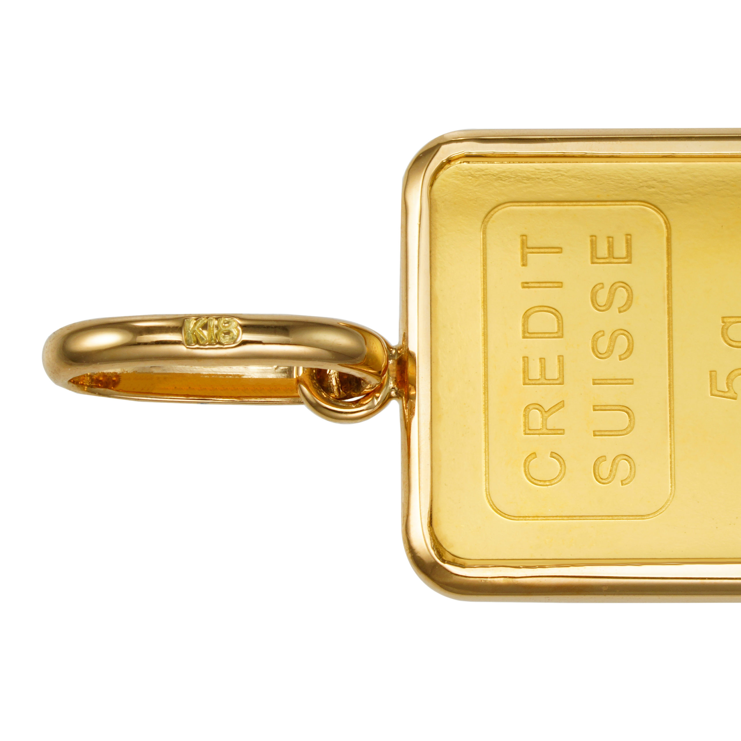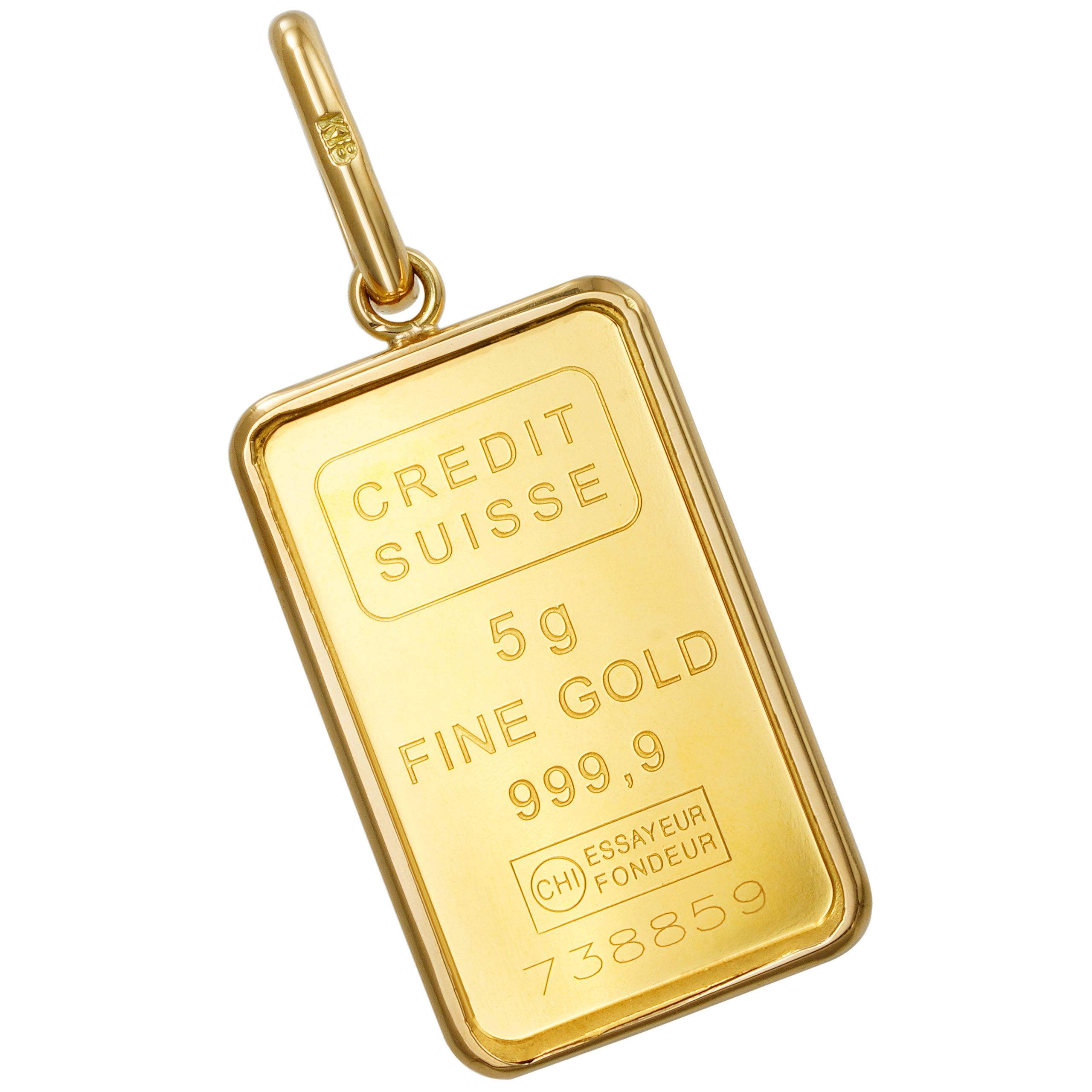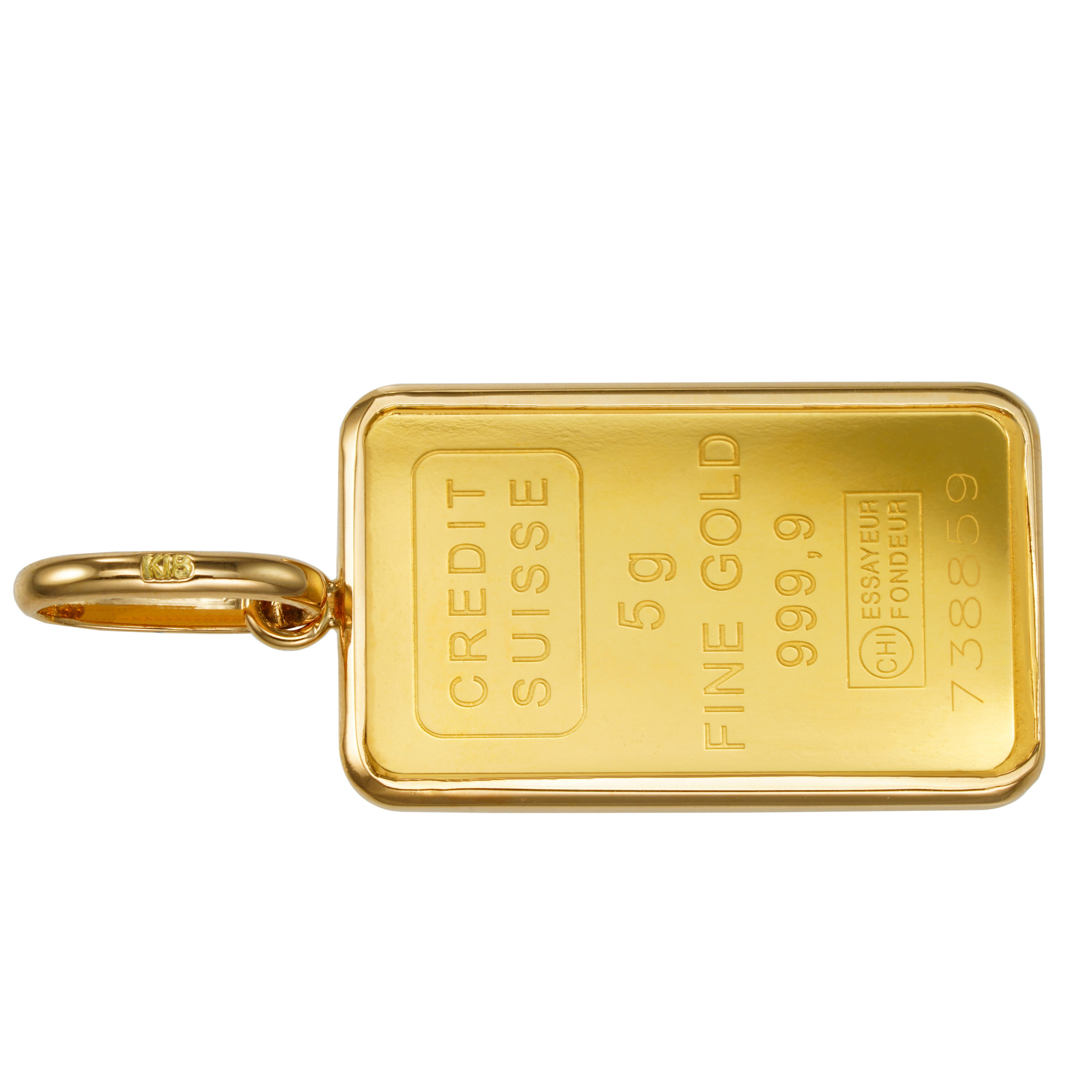 裏面は CREDITSUISSE社のマーク、重量、素材、品位、精練分析者マーク、シリアルナンバーが刻印され確かな品位を示します。