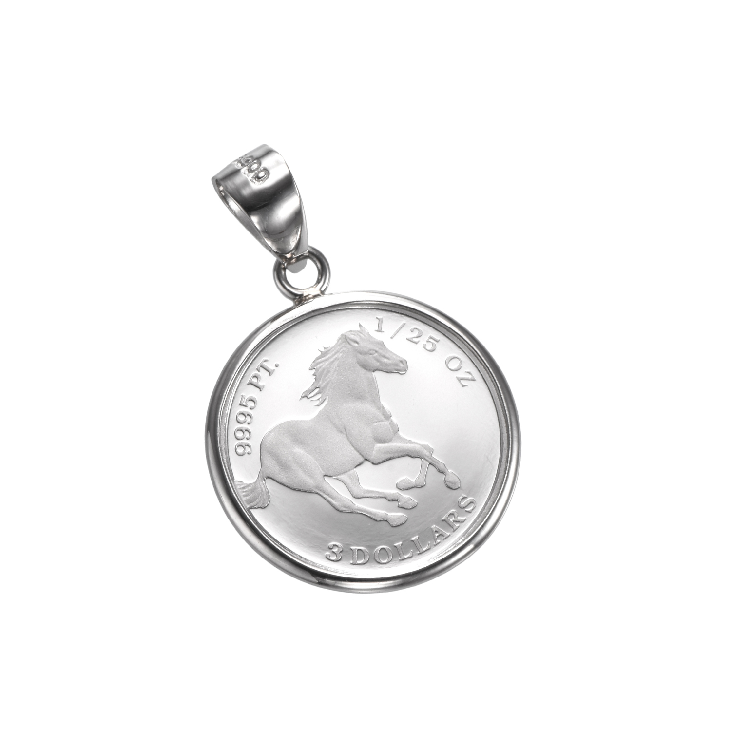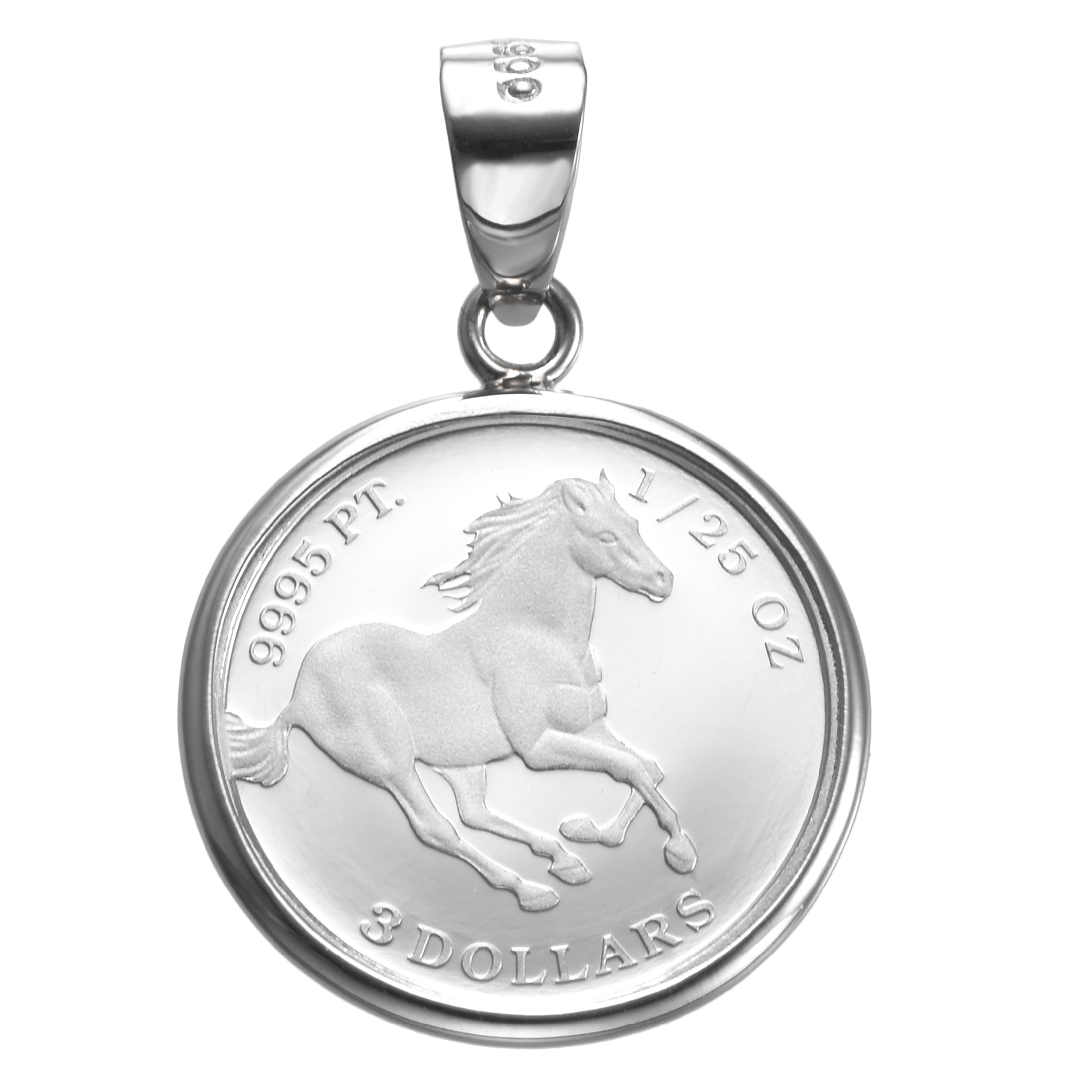 Pt999 純プラチナ コイン ペンダント ツバル ホース 1/25oz Pt900 シンプルフレーム