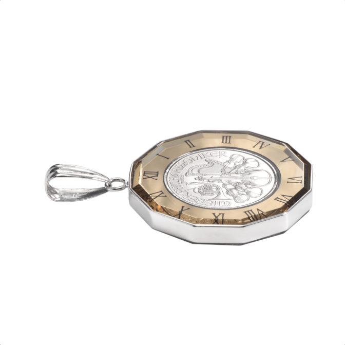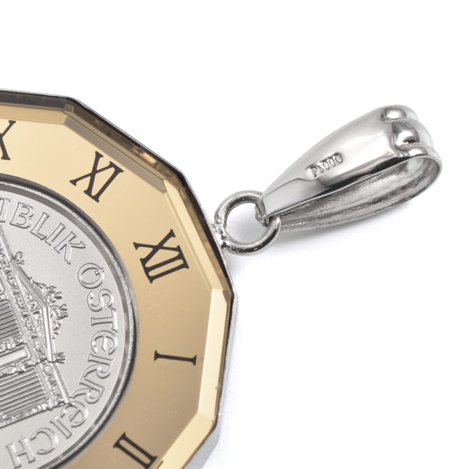 Pt999 コインペンダント ウィーンハーモニー 1/25oz 染めガラス時計