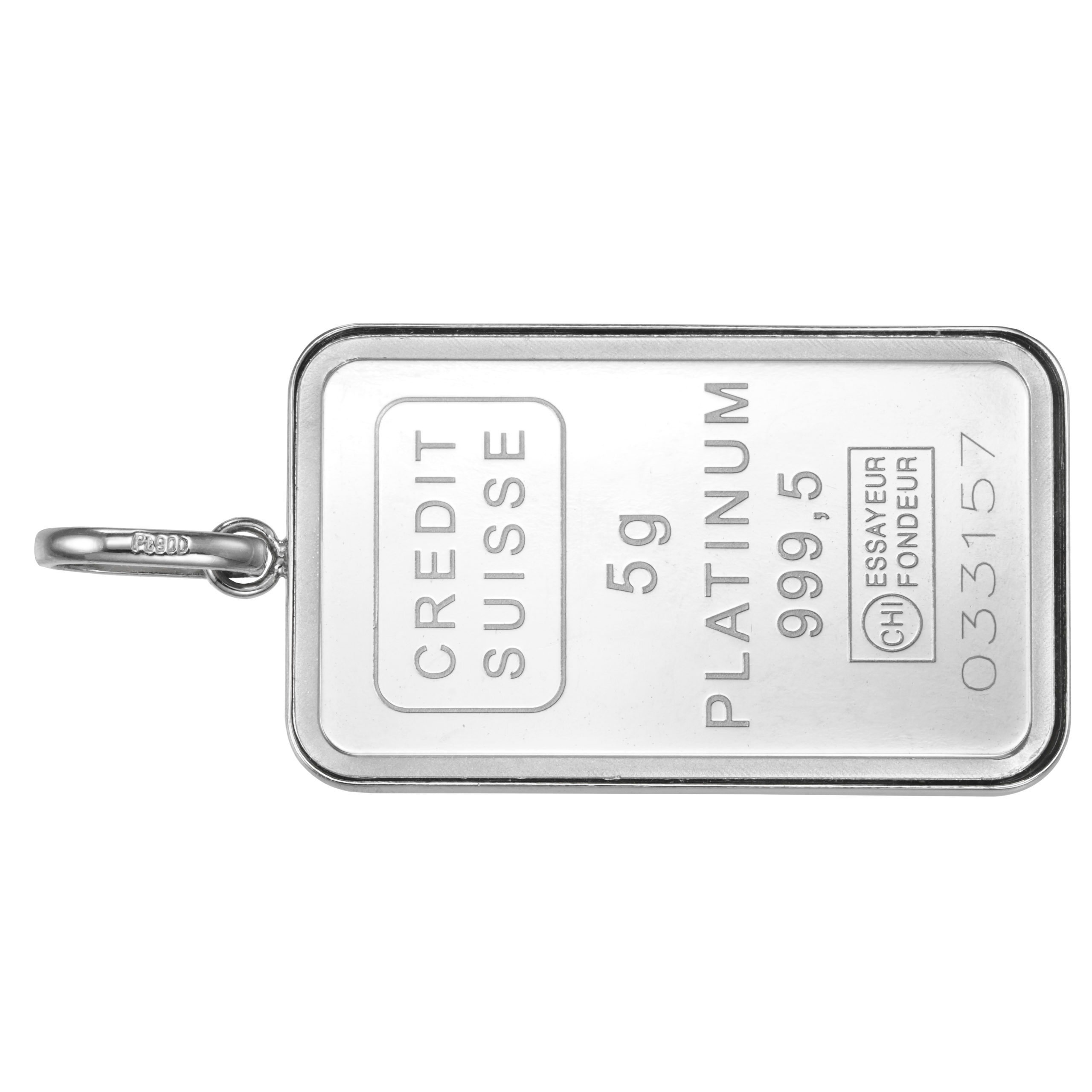 裏面は CREDITSUISSE社のマーク、重量、素材、品位、精練分析者マーク、シリアルナンバーが刻印され確かな品位を示します。
