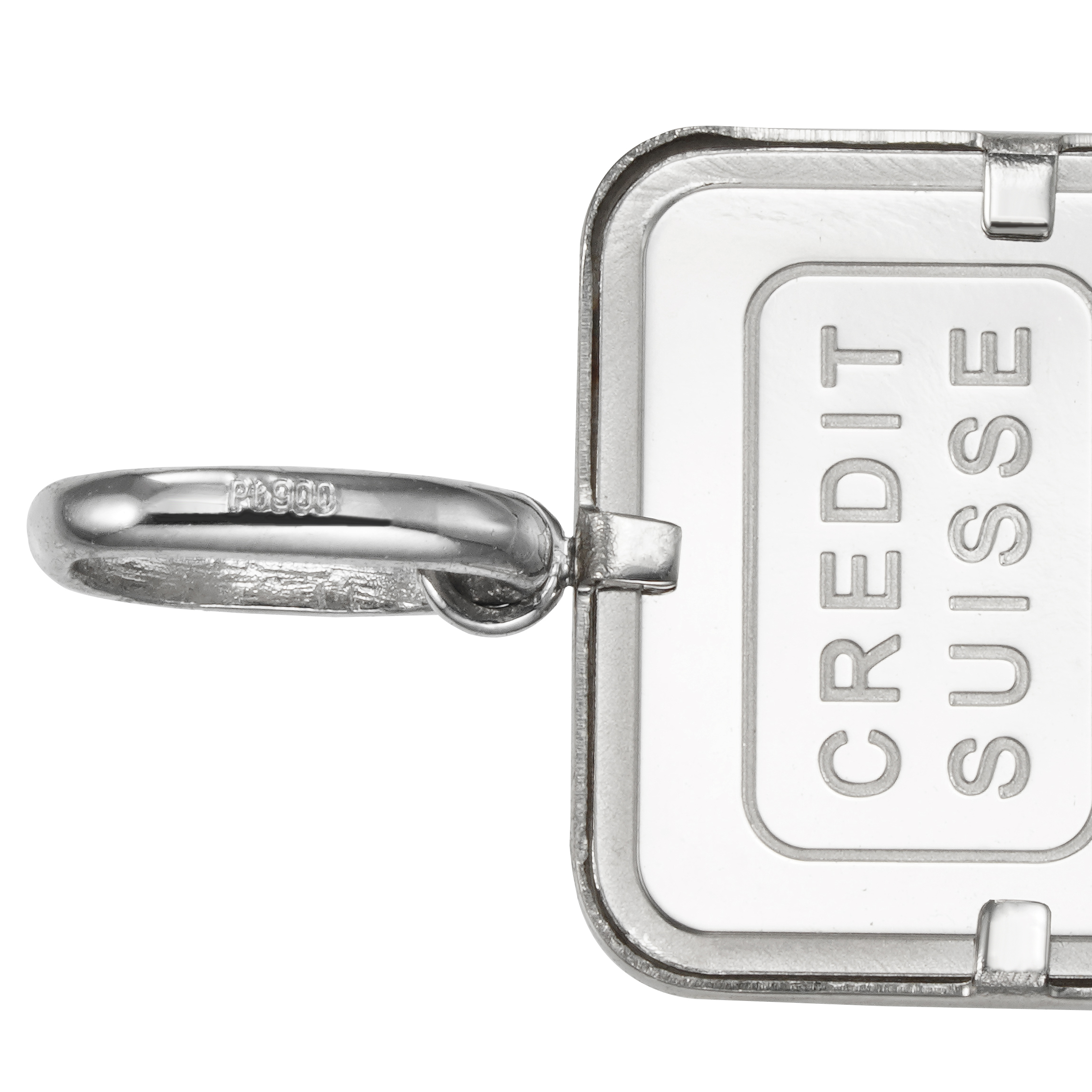 裏面は CREDITSUISSE社のマーク、重量、素材、品位、精練分析者マーク、シリアルナンバーが刻印され確かな品位を示します。